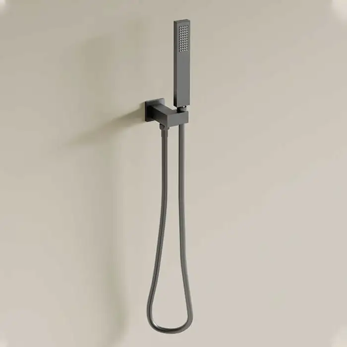 The shower set is available in a stylish grey color.