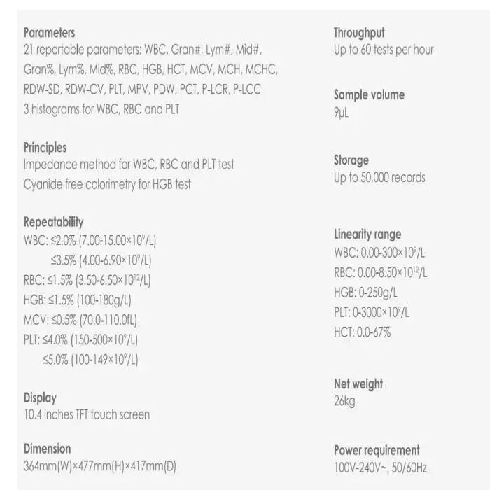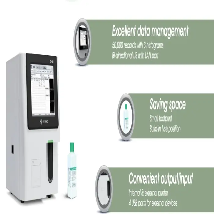 The dimensions and weight of the Dymind blood analyzer vary slightly by model, but they are generally compact and designed to fit comfortably in most laboratory environments.