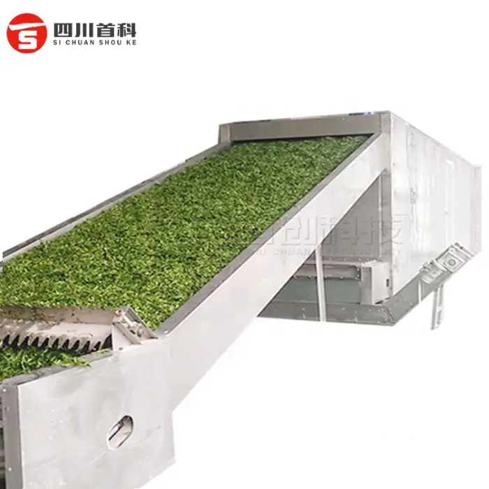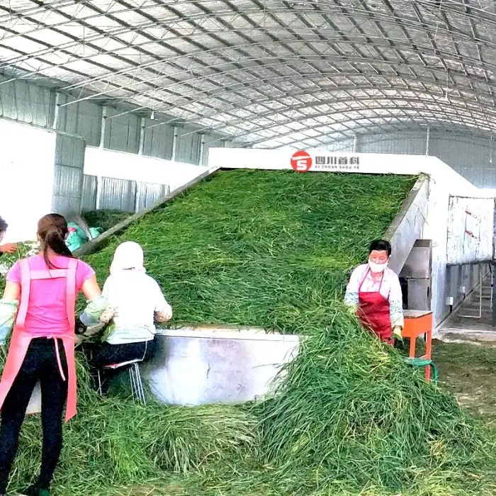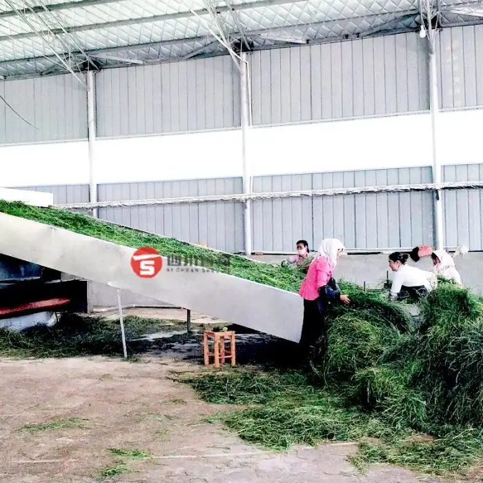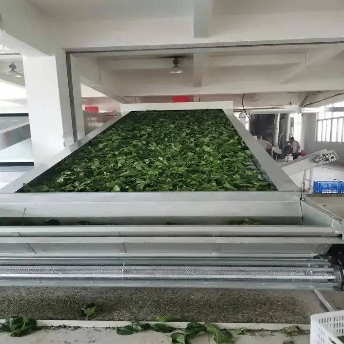 This belt dryer is designed to efficiently dry various herbs such as chervil, peppermint, stevia, lemongrass, and marjoram.