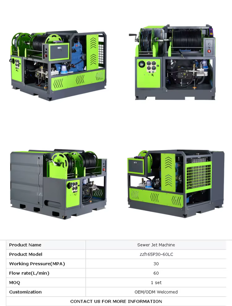 300 Bar Water Jetter Air Industrial Grade Pipe Negative High-Pressure Tube Drain Machine for Duct Cleaning