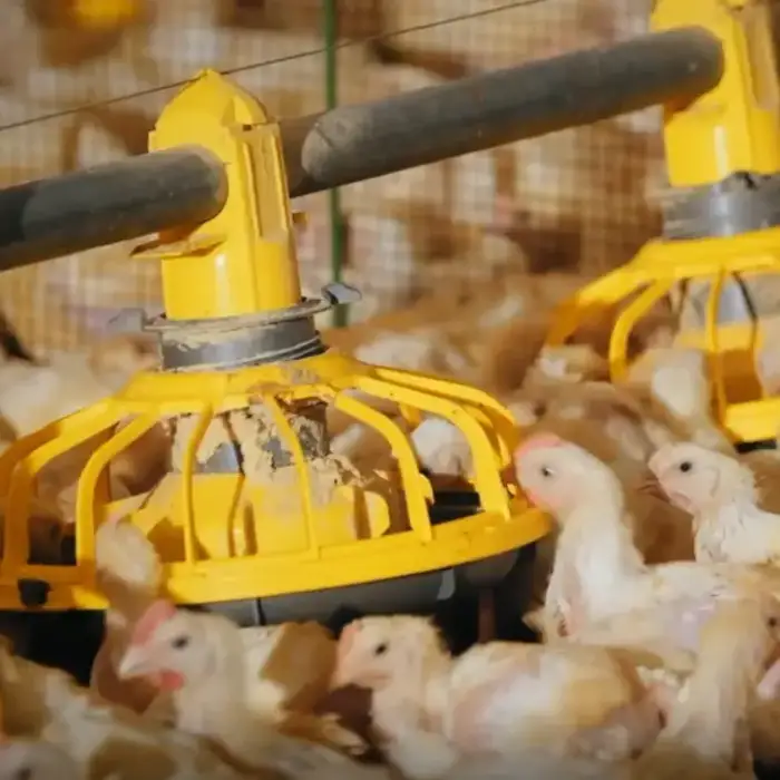 The automatic feeding system distributes feed evenly across the floor, ensuring all chickens have access to food.