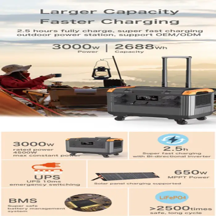 The 3000W T30 AC Battery Pack has a capacity of 2688Wh, providing long-lasting power for your devices.