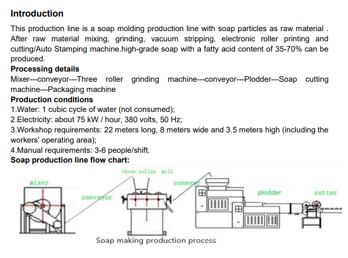 This production line can be used to manufacture various types of soap, including bar soap, liquid soap, and specialty soaps, depending on the equipment configuration.