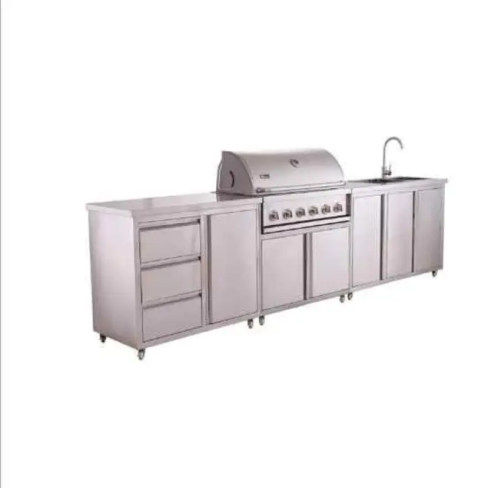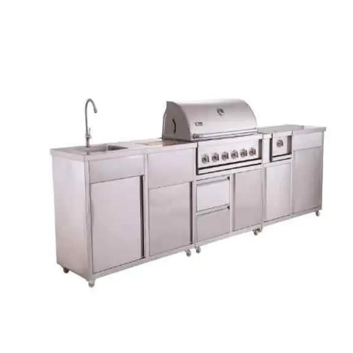 The barbecue grill is made of 304 stainless steel, which is known for its durability and resistance to rust and corrosion.