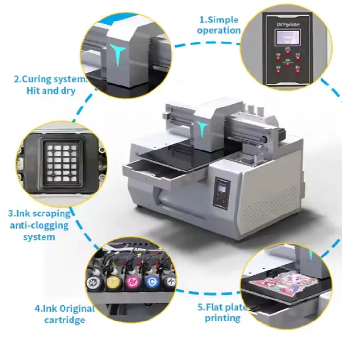 The printer utilizes advanced UV printing technology for vibrant and detailed prints.