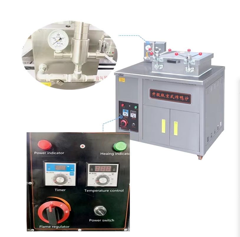 Yes, the fryer is equipped with safety features such as pressure release valves and temperature control to ensure safe operation.