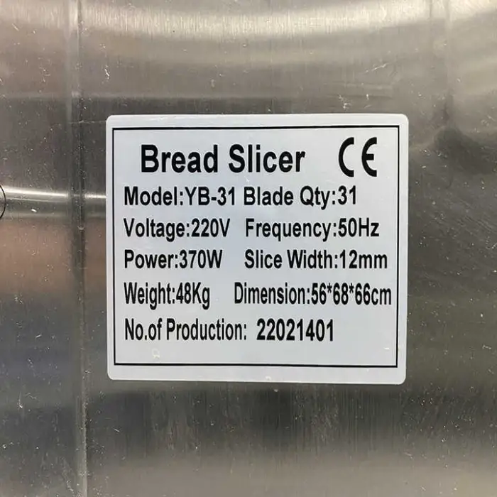 The bread slicer operates on a voltage of 220V.