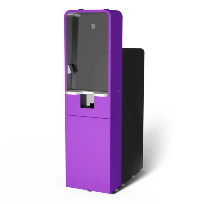 The machine features a custom display type that is user-friendly and enhances the customer experience.