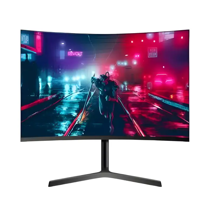 The curved design wraps around the viewer, enhancing immersion and making it ideal for gaming or multitasking.