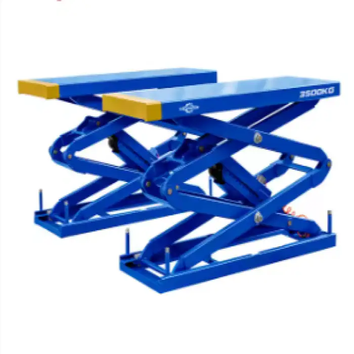 The JSL-3500U is a double cylinder hydraulic scissor lift designed for efficient lifting and maintenance tasks.
