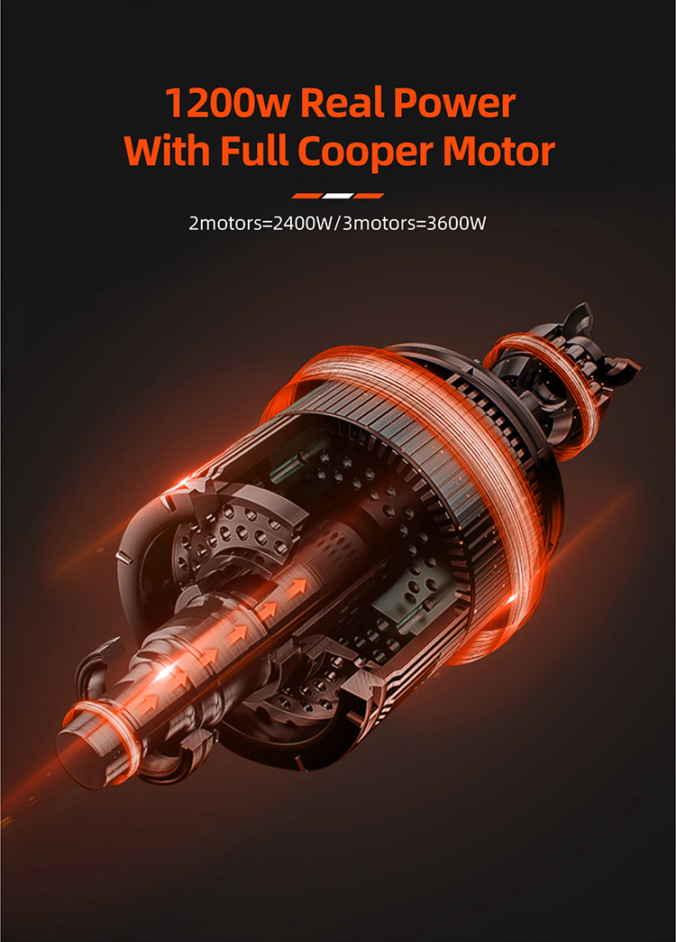The vacuum cleaner has a power range of 2400W to 3600W.