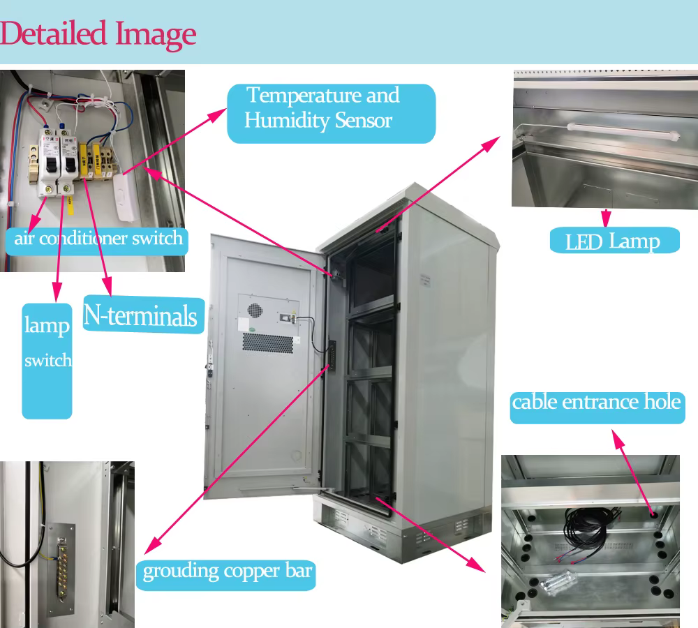 The cabinet features a 1500W AC220V air conditioning system to ensure efficient cooling of the internal equipment.