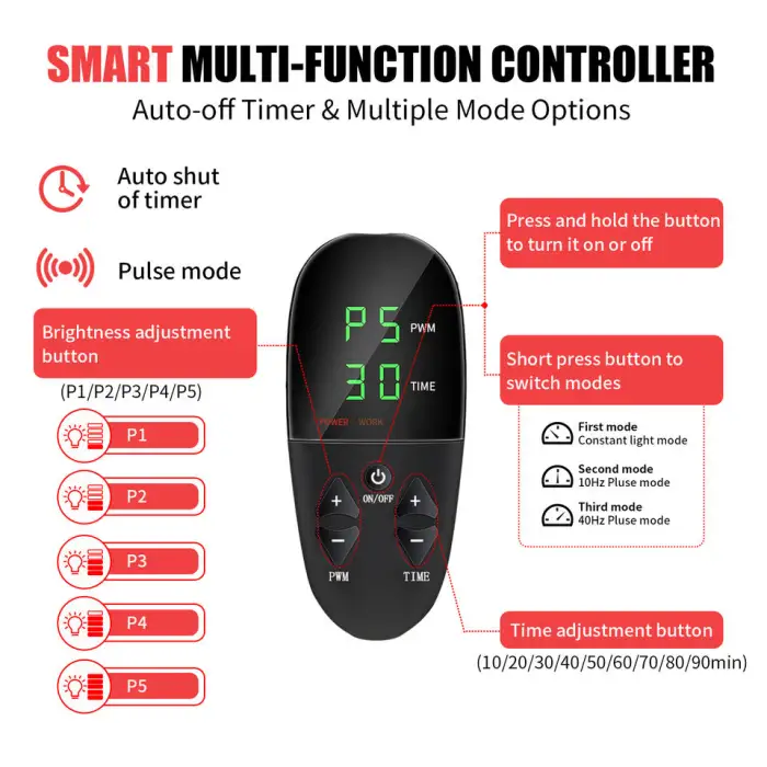 The beam angle of the LEDs is 90 degrees, allowing for focused light therapy.