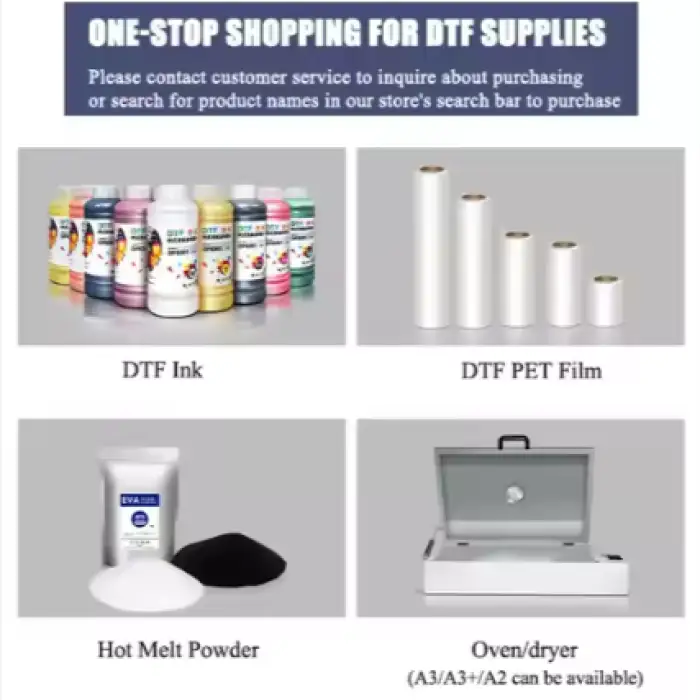 The printer supports a maximum print width of 330 mm (A3-size). You can print designs up to that width on compatible DTF PET film.
