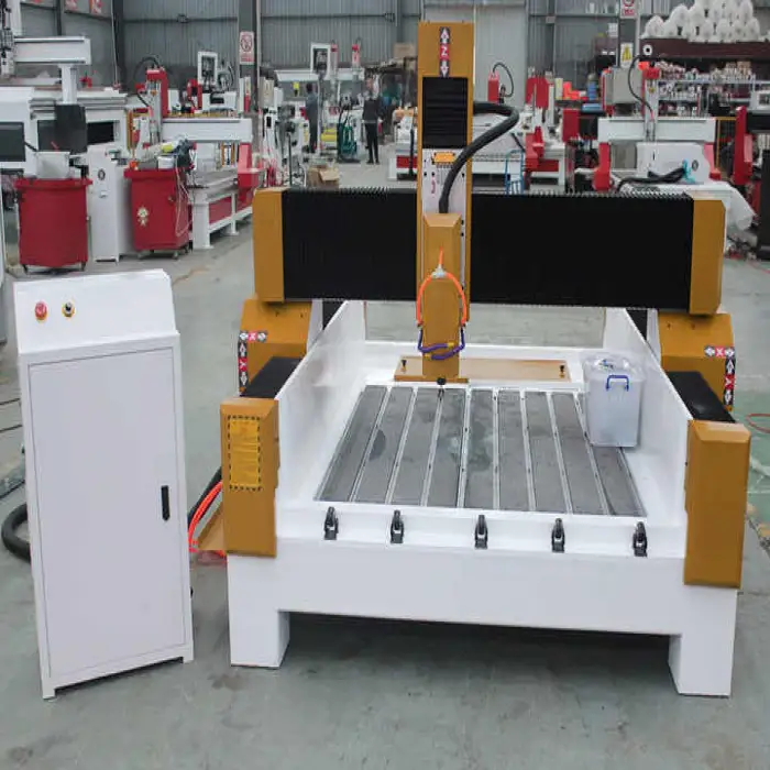 The machine is designed to engrave, carve, and cut various types of stone, including marble and granite.