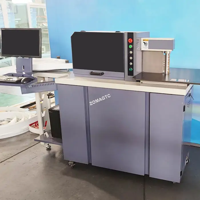 The machine is compatible with flat plates, aluminum edge strips, and folded aluminum profiles.
