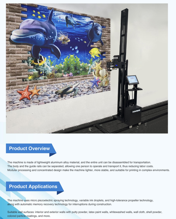 A 3D Wall Printing Machine is a device that uses advanced technology to create three-dimensional designs and patterns directly onto walls, allowing for unique and customizable wall art.