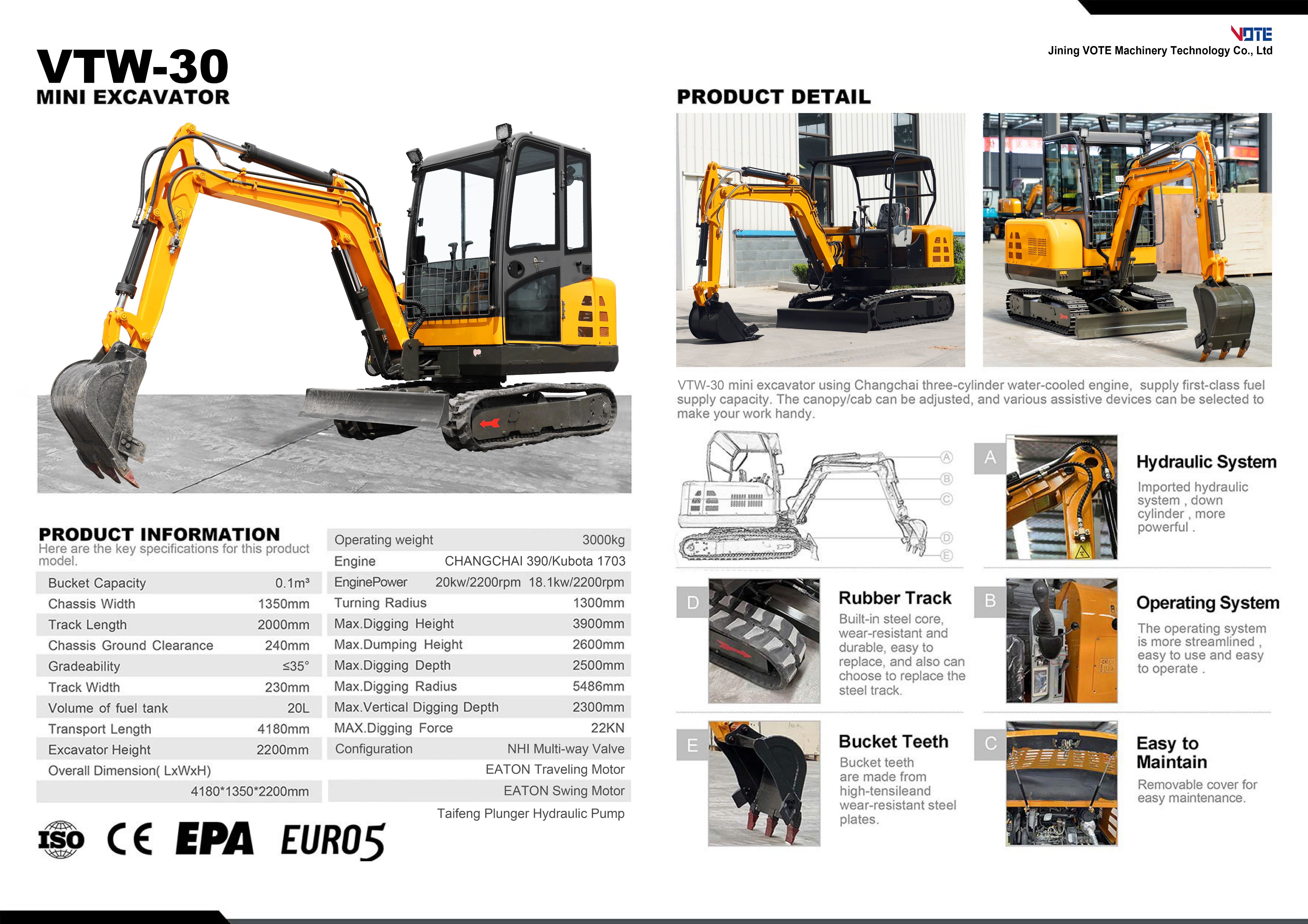 The 3 Ton Mini Excavator features an advanced hydraulic system with SHIMADZU hydraulic pumps and NHI hydraulic valves for superior performance.