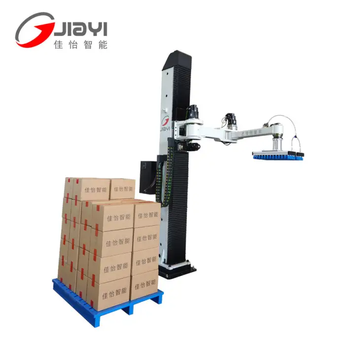 The robot features a four-axis design, providing maximum flexibility for palletizing tasks.