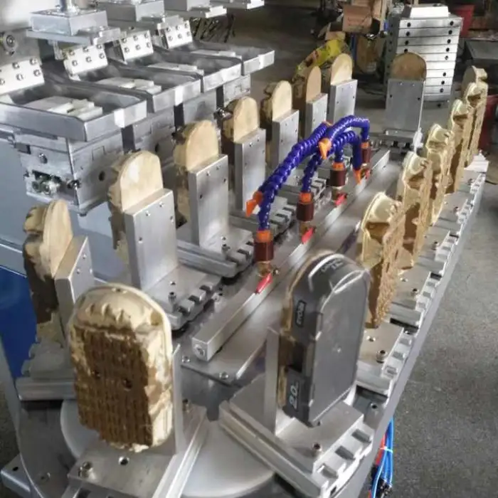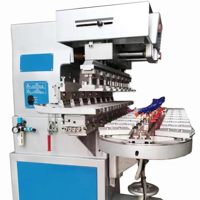 The 4 Colour Pneumatic Electric Pad Printer is designed for printing on various items such as golf balls, pens, lamps, and toys.