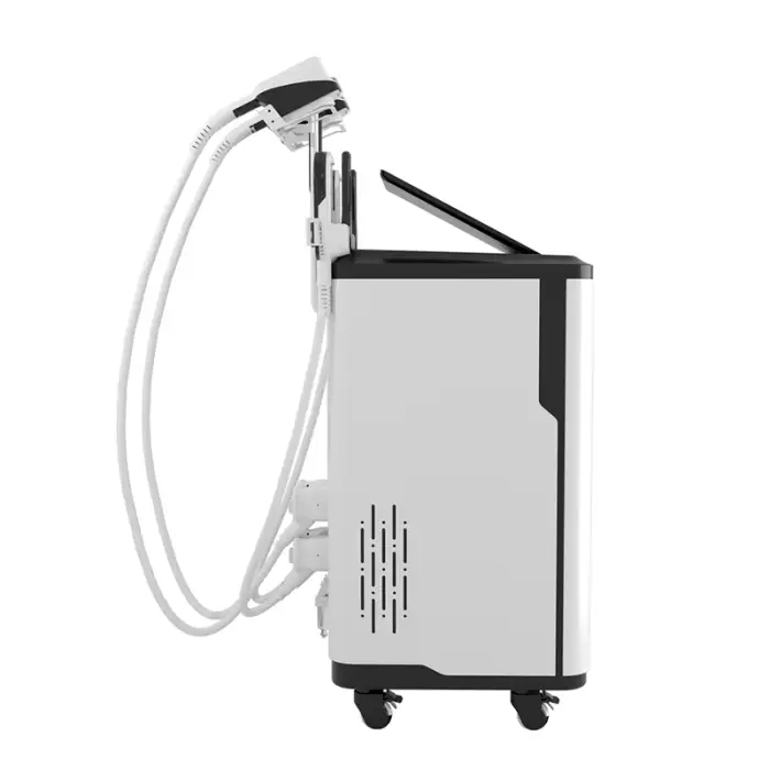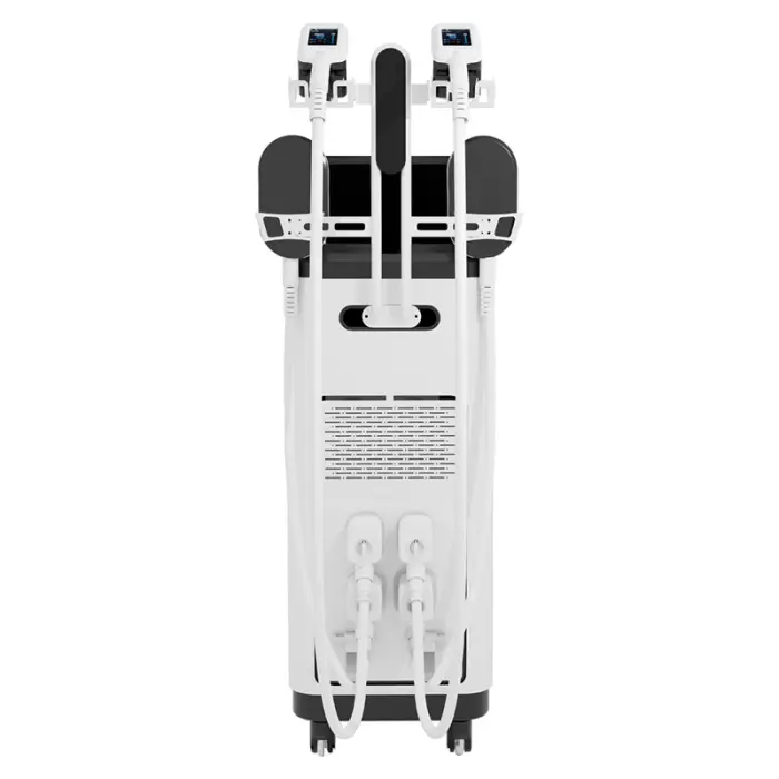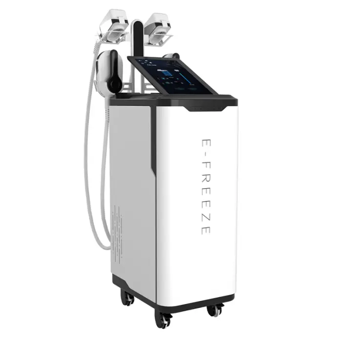 The machine features four handles: two magnetic thin handles and two frozen handles, allowing for efficient treatment of multiple areas simultaneously.