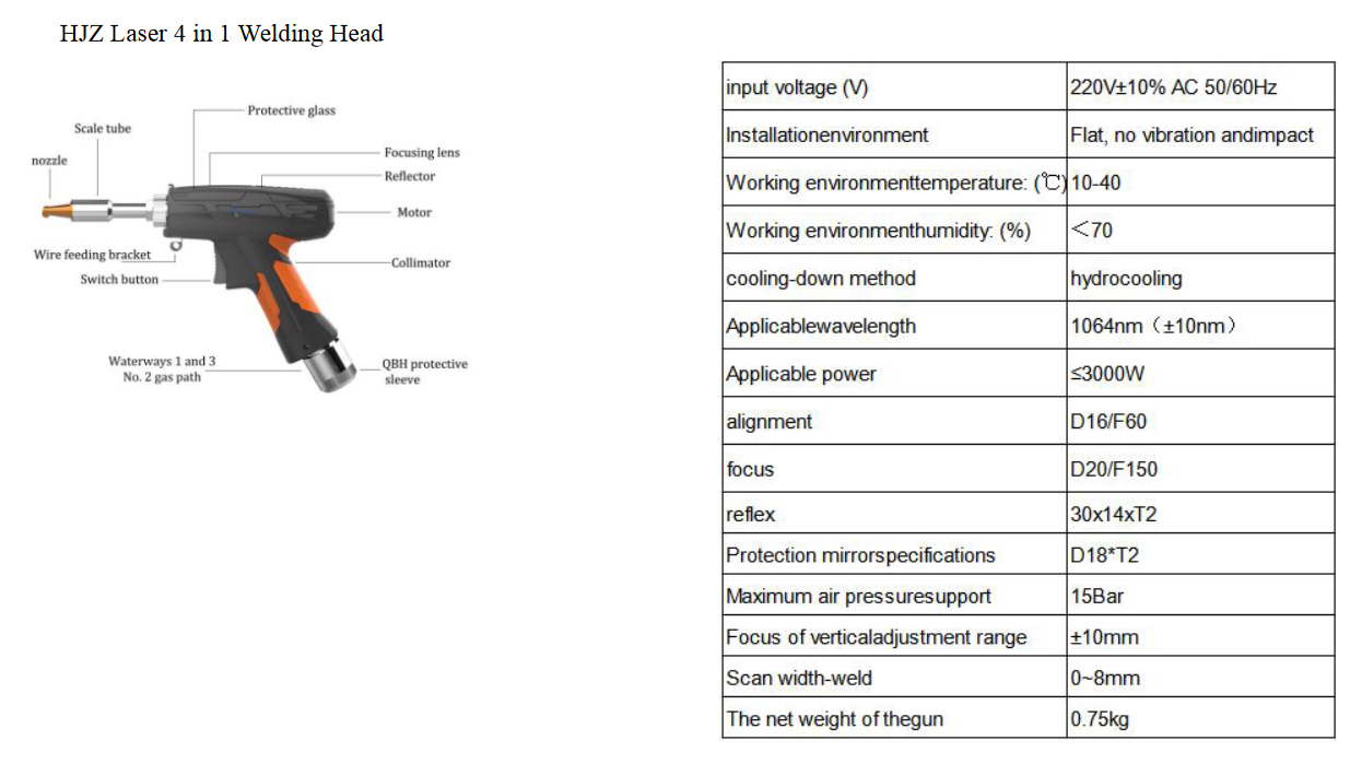 The main functions include welding, cutting, weld seam cleaning, and remote cleaning.