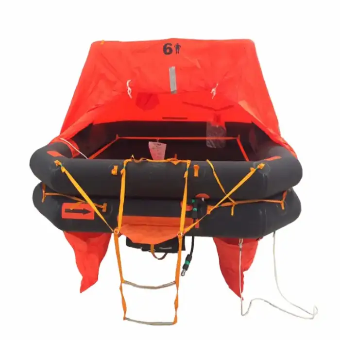 The inflatable life raft can support up to 6 persons.