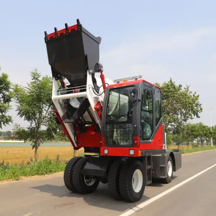 The mixer truck operates on a 4-wheel drive system.
