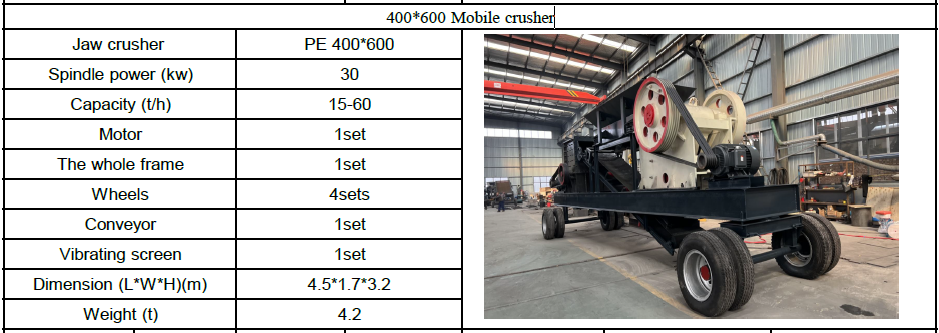 The production capacity of the 400*600 mobile crusher can vary, but it typically ranges from 20 to 50 tons per hour, depending on the material and conditions.