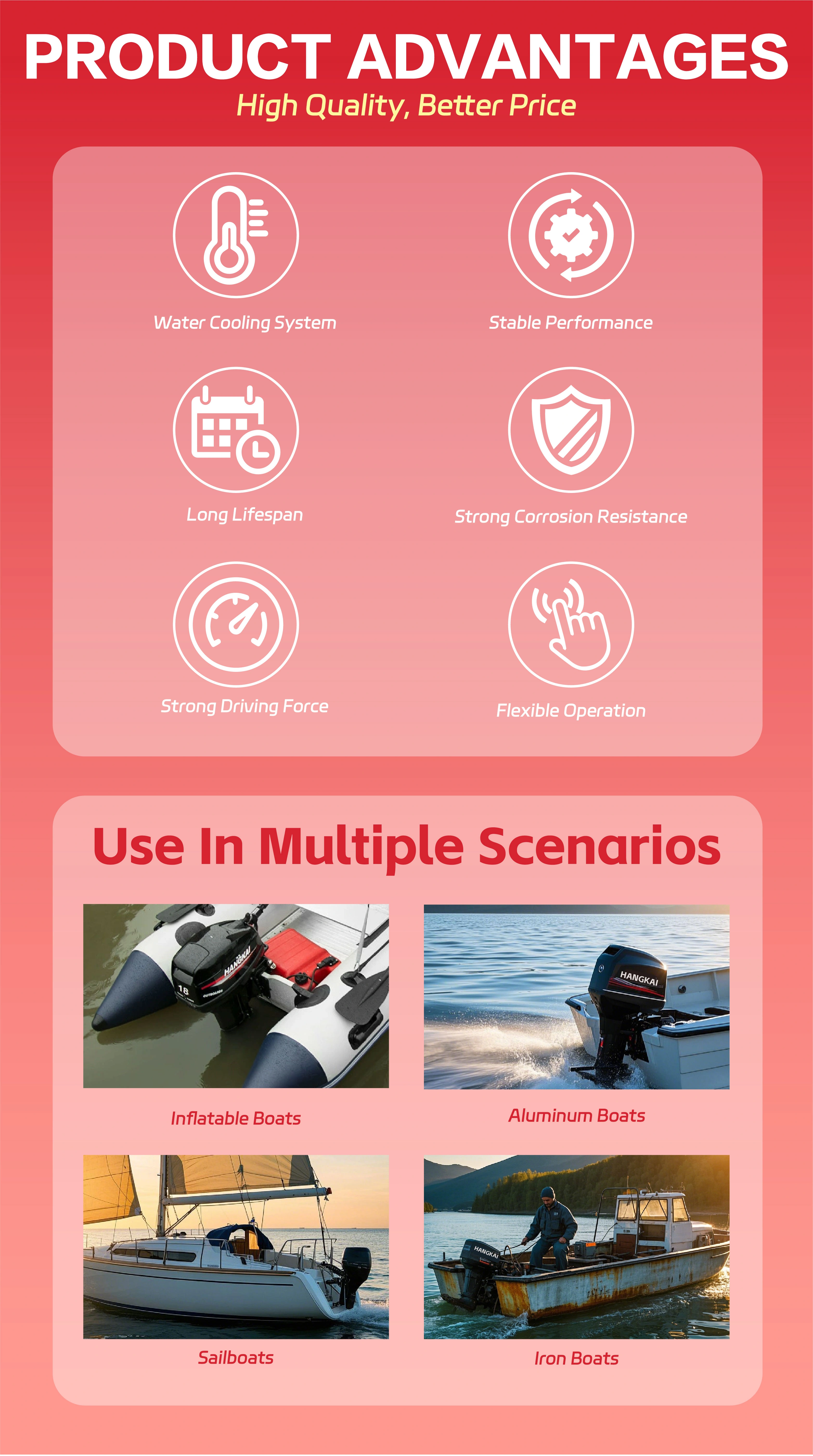 This motor is compatible with fishing boats, pontoons, and various other marine vessels.