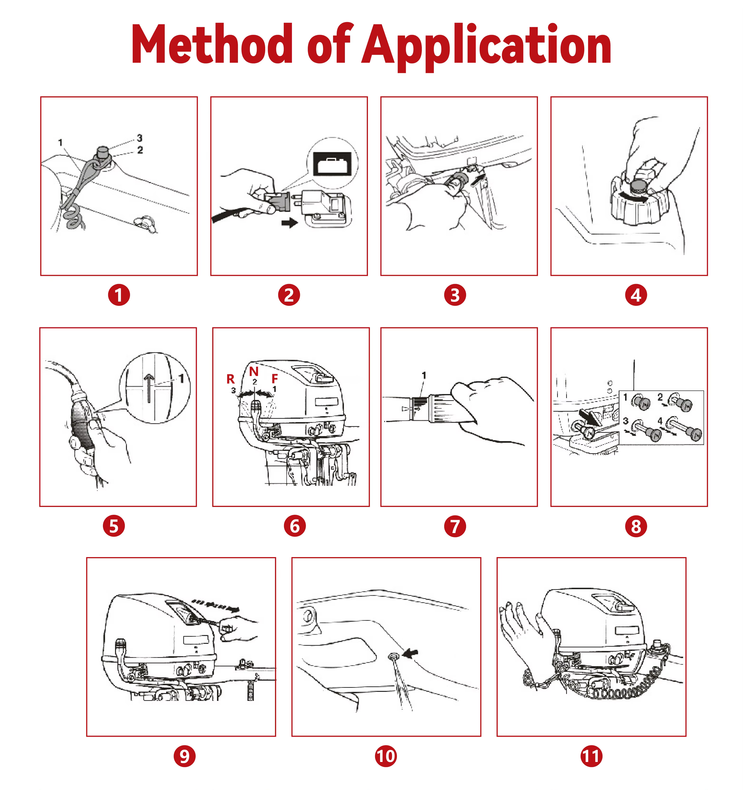 The motor is suitable for boats ranging from 3 to 10 meters in overall length.