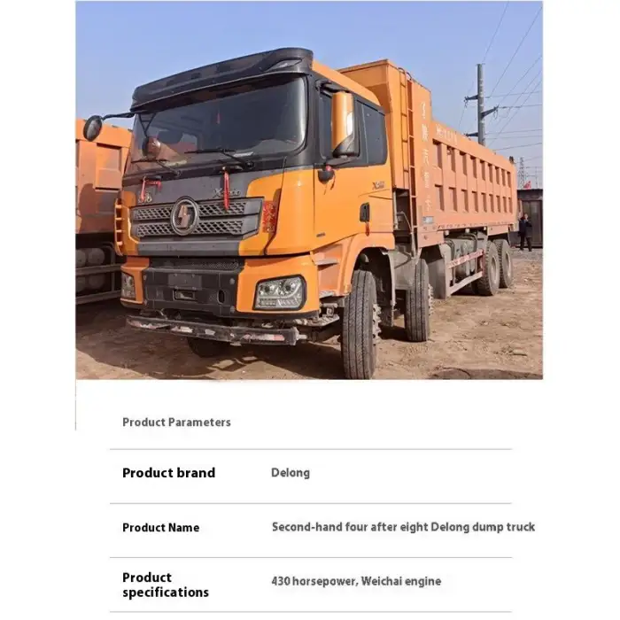 The DeLonghi 430 HP Dump Truck is equipped with a Weichai engine that has an engine capacity greater than 8L.
