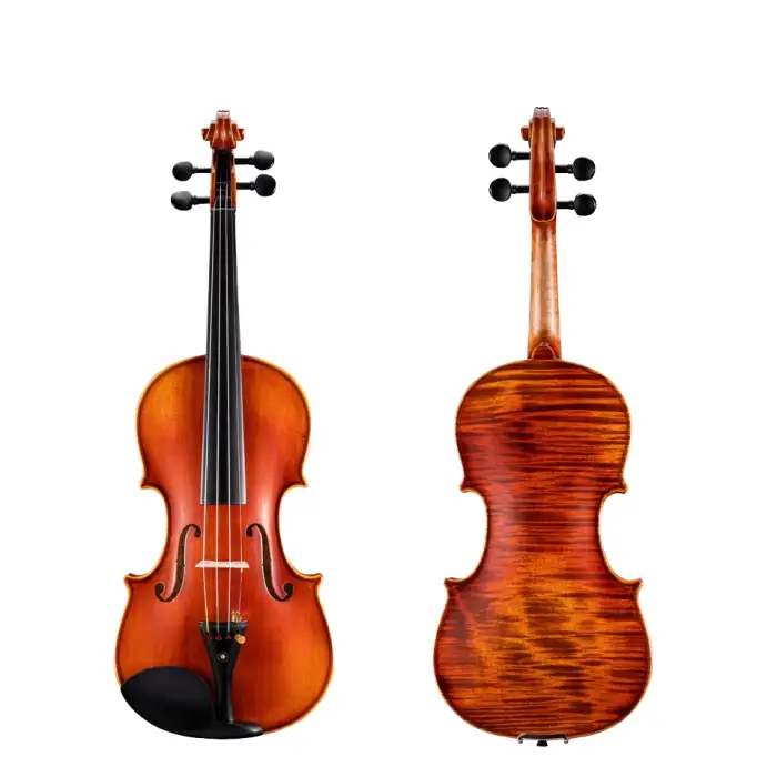 The AVL320 is made from high-quality flamed maple for the top, back, and sides, with an ebony fingerboard and a Brazil wood bow.