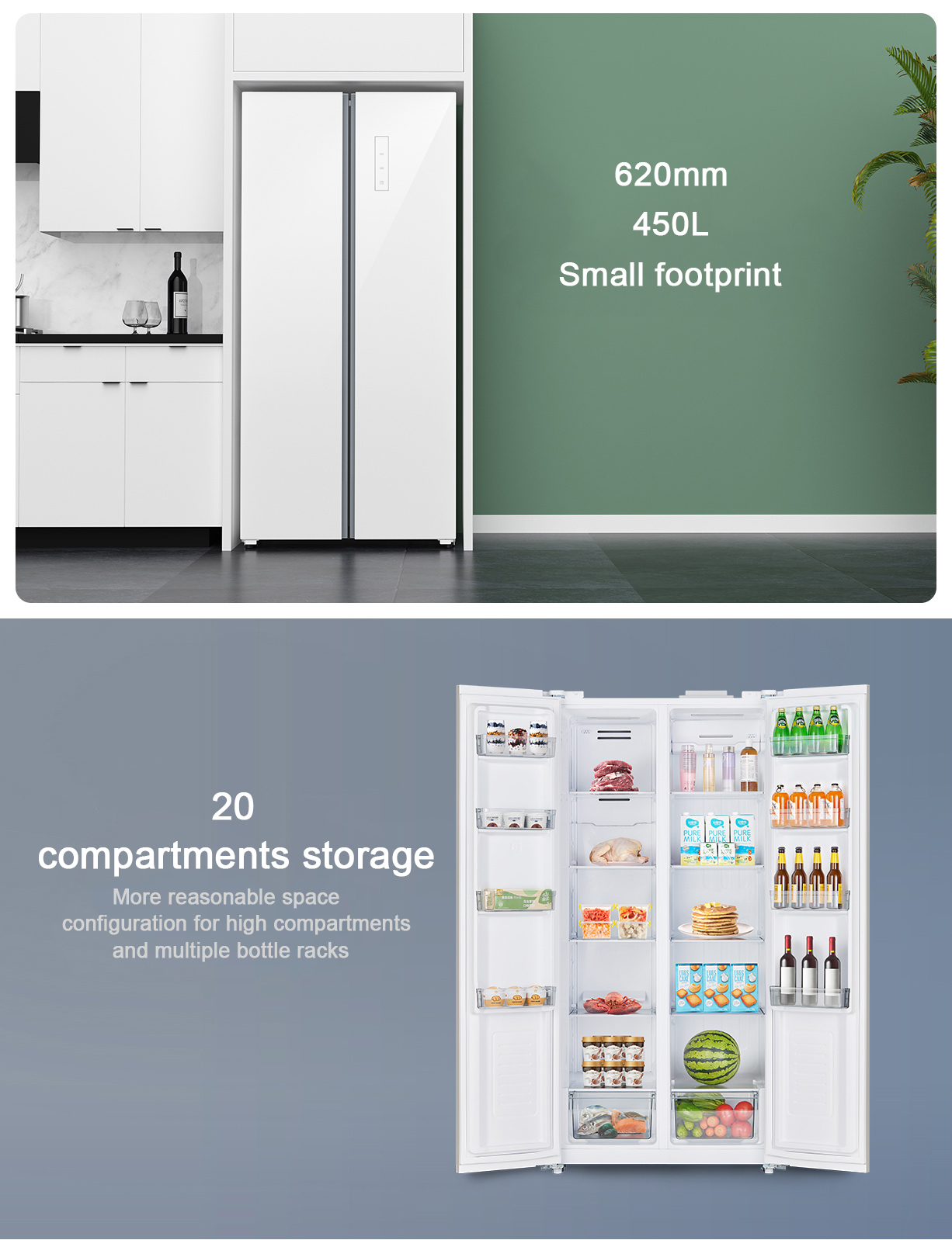The refrigerator has a capacity of 450 liters, making it suitable for households, hotels, and commercial applications.