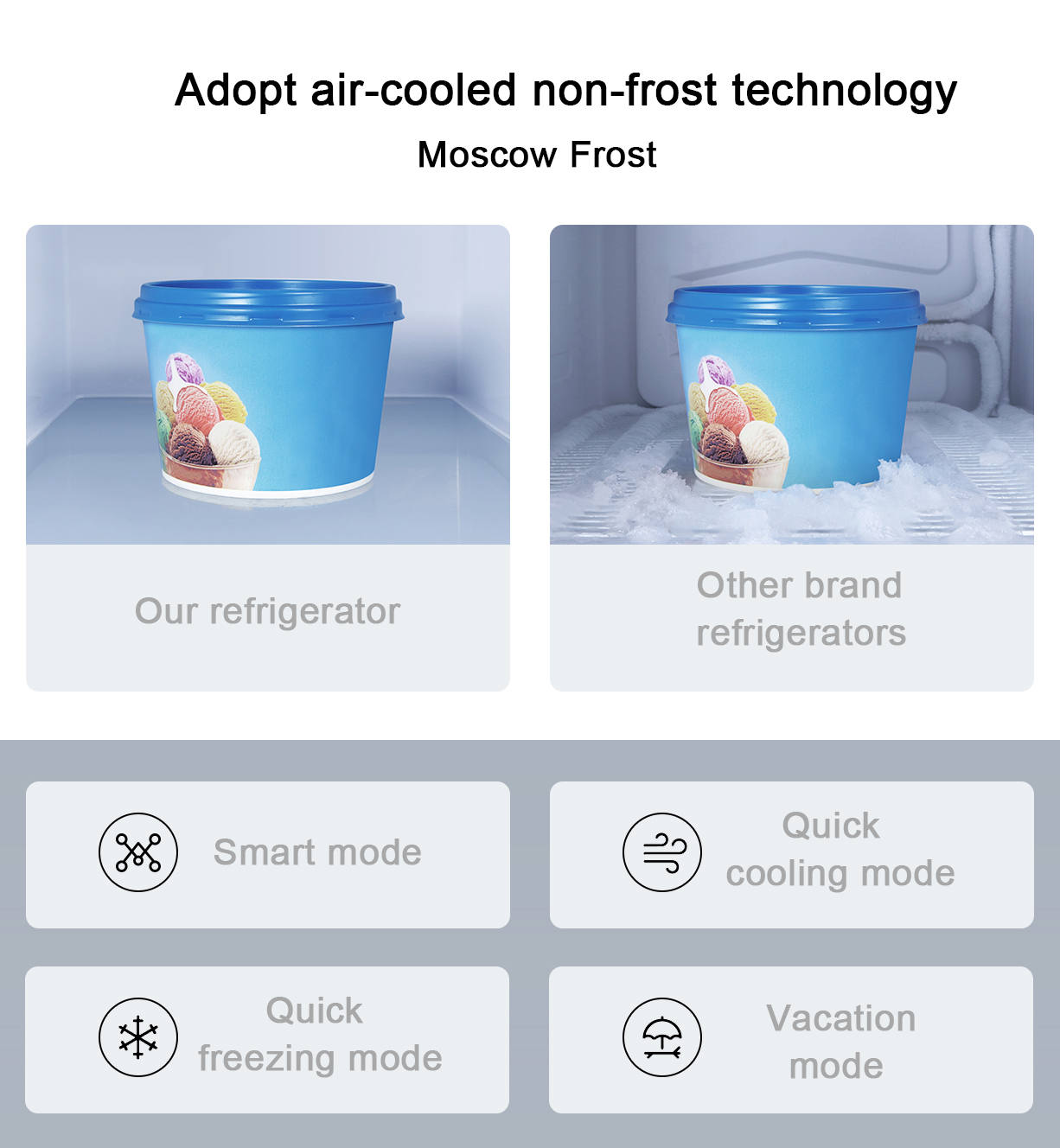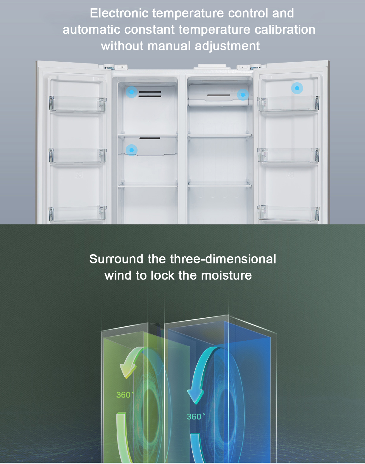 This refrigerator uses an air cooling refrigeration system to keep your food and beverages chilled.