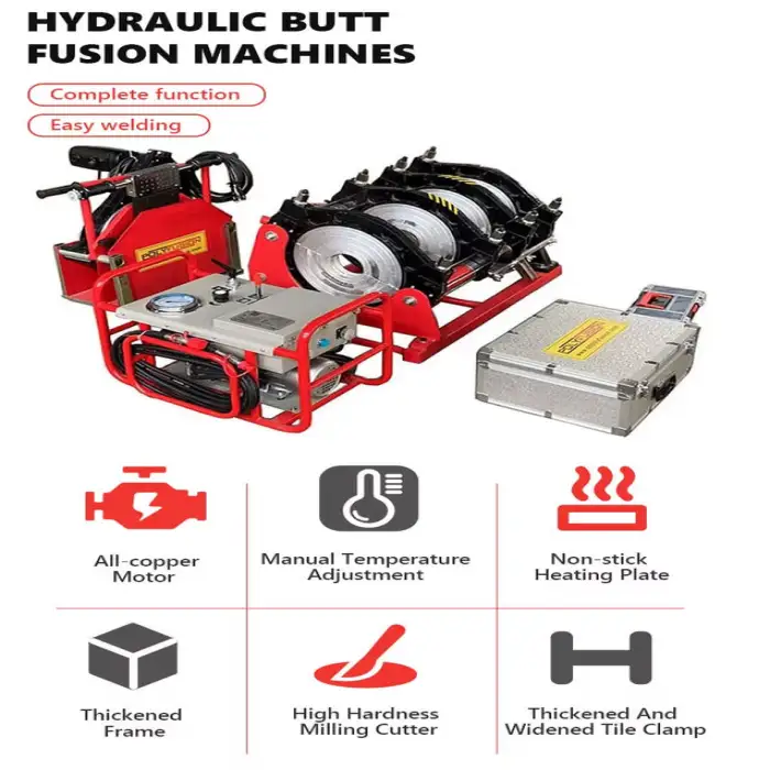 The machine is designed to weld HDPE, PE, PPR, and PVDF pipes efficiently.