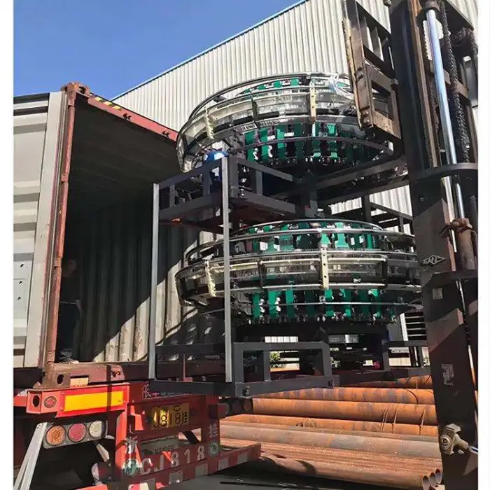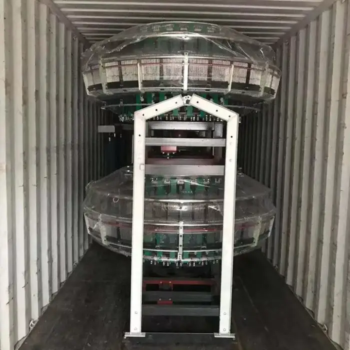 The dimensions of the 4-Shuttle Circular Weaving Loom are 9.8 meters in length, 2.2 meters in width, and 3 meters in height.