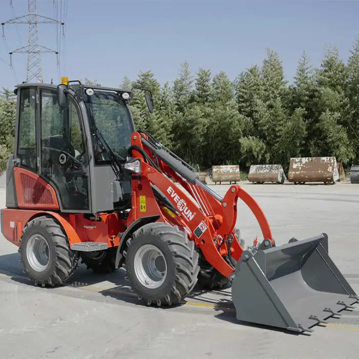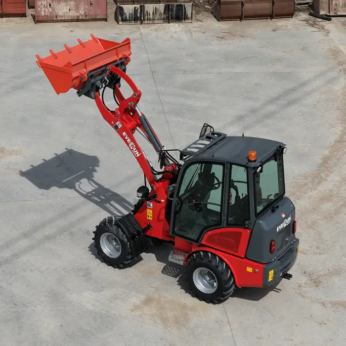 The 4WD Mini Tractor Loader is equipped with an EVERUN brand engine.