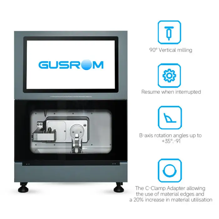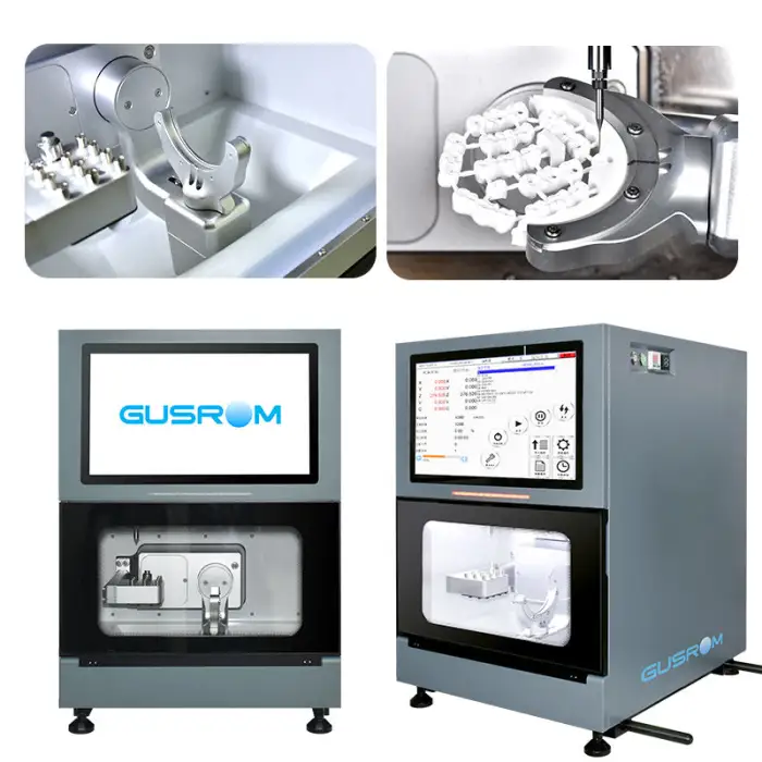 The machine enhances efficiency in dental labs by milling intricate dental restorations with high precision.