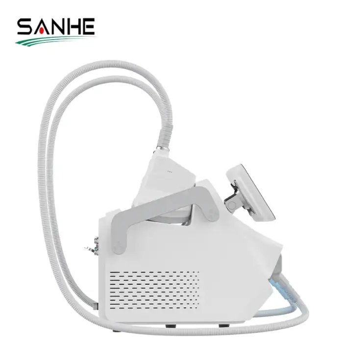 The machine features a multi-layered cooling system that includes semiconductor cooling, water cooling, and air cooling to maintain ideal temperatures during treatments.