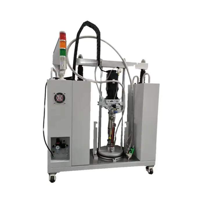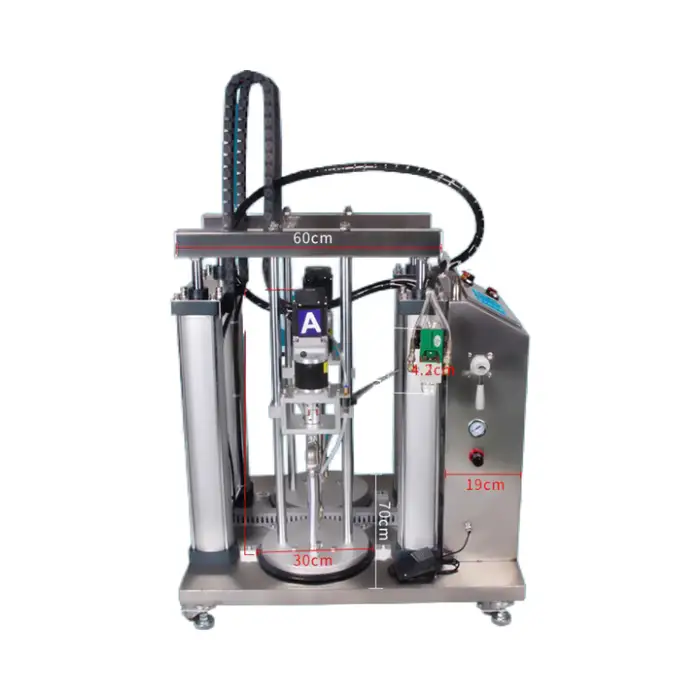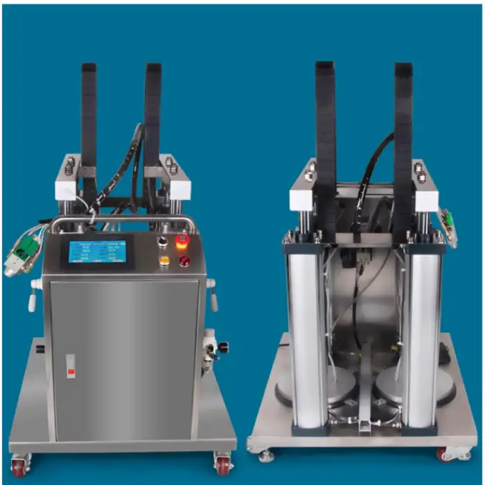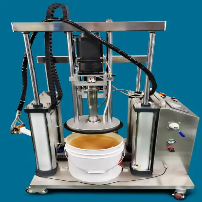 The machine is designed to fill up to 5 gallons of thick adhesive glue.