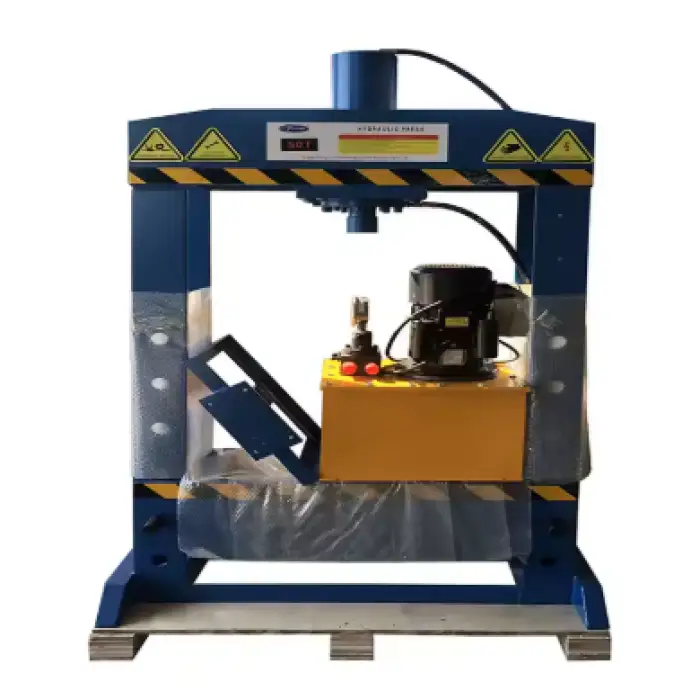 The 50 Ton Hydraulic Press Machine has a maximum load capacity of 50 tons, making it suitable for heavy-duty metal pressing tasks.