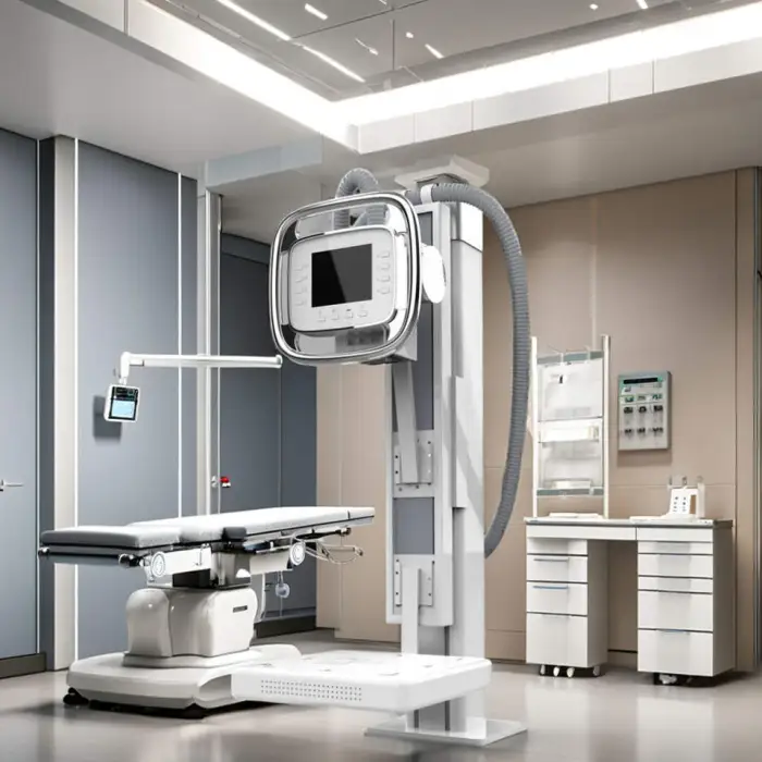 The dimensions of the equipment are 230.0 x 150.0 x 790.0 cm, providing ample space for effective operation in X-ray rooms.