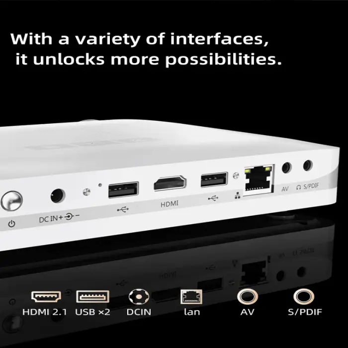 The product description does not list specific ports. Many projectors include HDMI and USB inputs plus audio out, but exact port types and counts vary by model—check the detailed listing or manual for the precise I/O configuration before purchase.