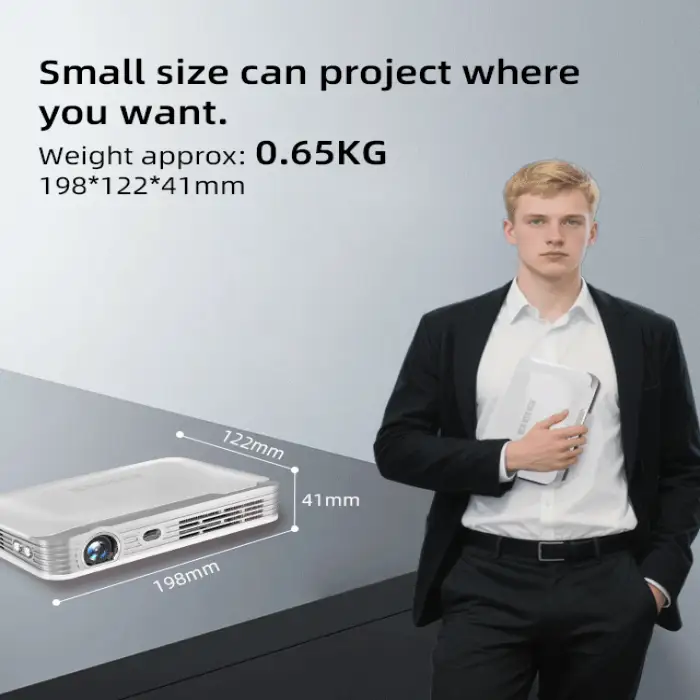 The single package size is 40×30×20 cm and the gross weight is about 2.7 kg. With a built-in battery and this weight it is reasonably portable for moving between rooms, classrooms or short outdoor setups.