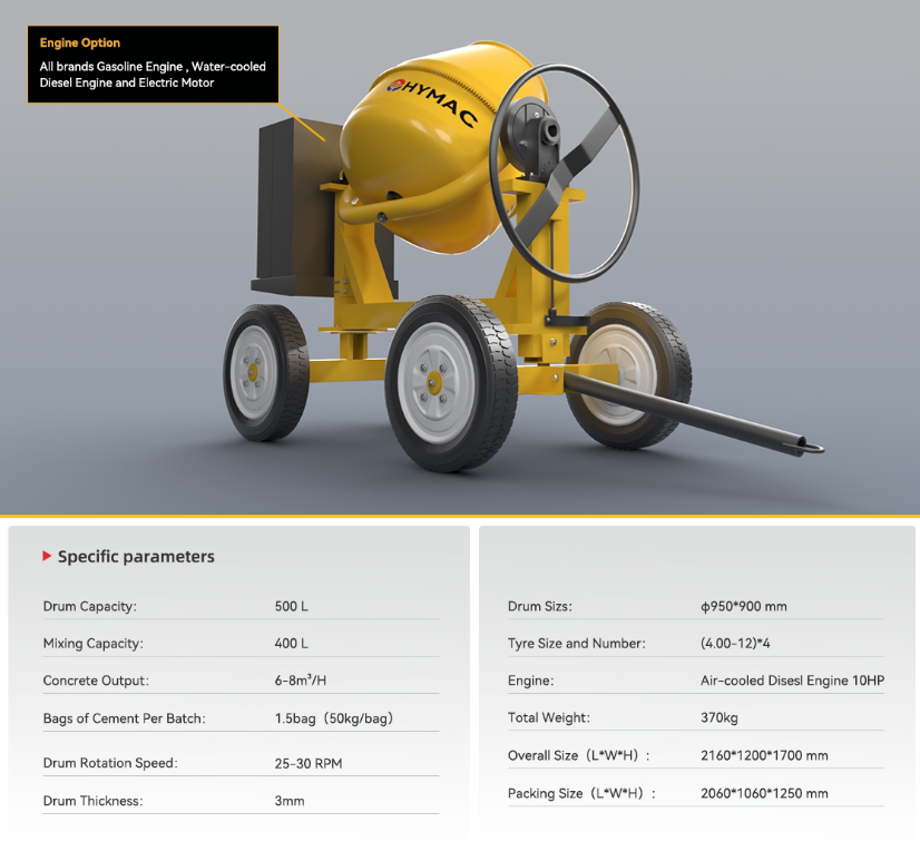The 500L Electric Concrete Mixer has a capacity of 500 liters, making it suitable for medium to large-scale concrete mixing projects.