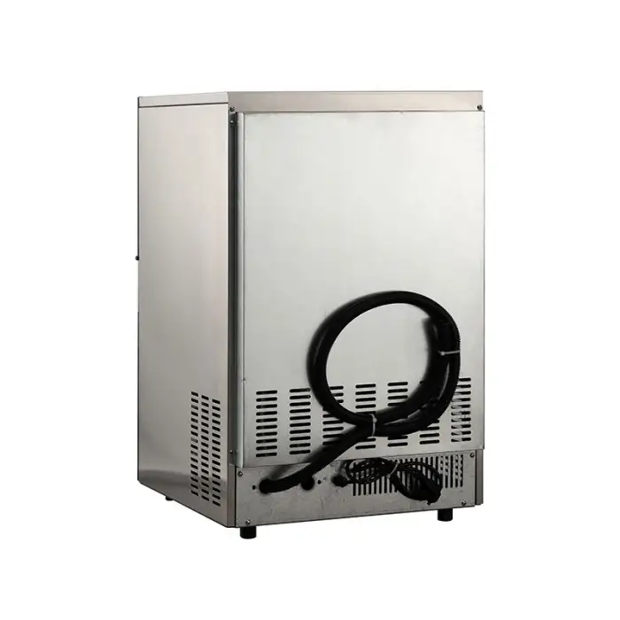 The 50kg Automatic Home Commercial Small Ice Cube Block Making Machine has a daily ice production capacity of 50kg.