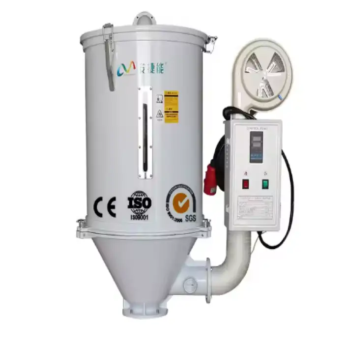 The efficient electric heating system quickly raises the temperature to dry the plastics effectively without damaging them.