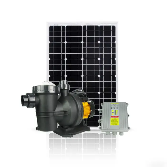 The pump operates on solar panels, making it an eco-friendly solution for pool maintenance.