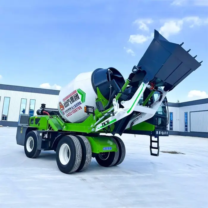 This mixer truck features a four-wheel drive (4WD) system for excellent mobility on various terrains.